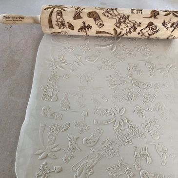 Our 23cm and 30cm rolling pins (this is the barrel measurement) have a 6cm diameter barrel and feature rotating handles and a sturdy nylon bushing. All our pins are deeply engraved, then oiled with a food grade mineral oil to preserve the timber against moisture. This oil needs to be reapplied every 6 months or so. Liquid paraffin is suitable, but vegetable oils are not as they can become rancid.