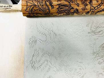 This fabulous addition to our fantasy range is sure to inspire! This deeply engraved design is sure to enhance a myriad of your ceramic creations! Please note: The long, wingless dragon on the left is not featured on the 23cm rolling pin.